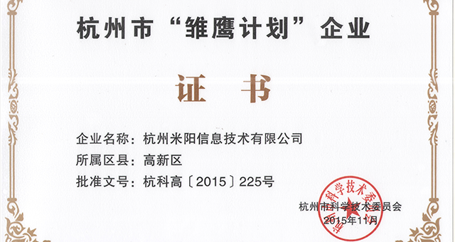 - 米阳信息荣获“雏鹰计划”企业称号