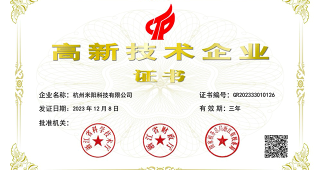 - 米阳科技再次荣获国家高新技术企业称号